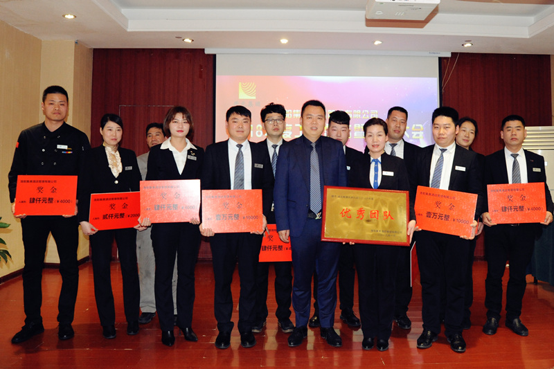 总经理助理丛万通宣读了2018年集美酒店管理公司表彰决定,董事长许明月亲自为伊川店管理团队颁奖,并与获奖人员亲切合影留念。先进代表张灿国、白霜、史丽娟上台发言,纷纷表示感谢集团提供的平台,将在今后的工作中牢记使命,找准酒店发展的关键点,创新工作思路,为公司业绩增加、个人价值提升做出更大的努力。