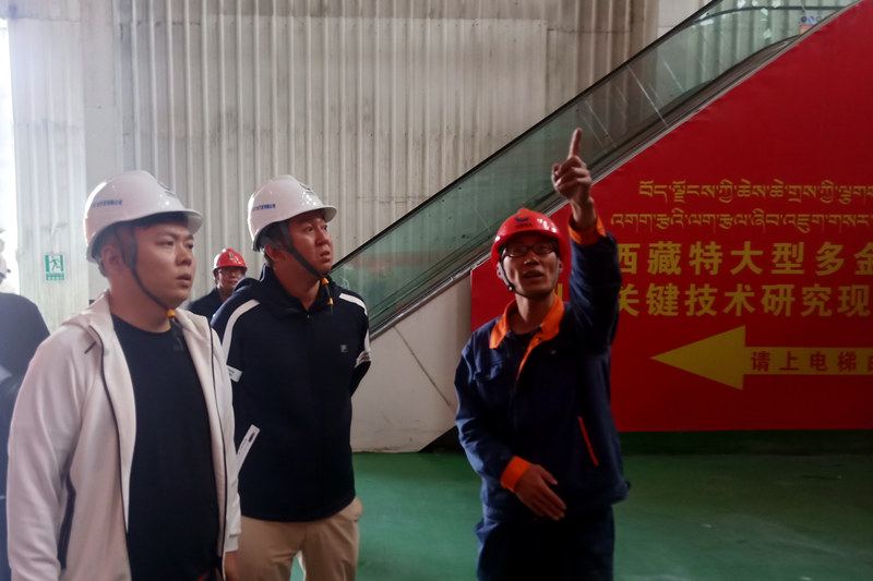 许总一行,首先在华泰龙公司工程技术人员的陪同下来到选矿厂。绕过弯弯曲曲的山路,从绿意盎然的山脚到白雪皑皑的山顶,这座日处理矿量40000吨的选矿厂在海拔5300米的矿业工地显得格外令人瞩目。许总在参观考察该选厂各工段工艺流程、设备运转实况的同时,也与选厂技术工作人员进行了深入的交流探讨,听完对方的介绍,许总高度赞扬了这座高原选厂在华泰龙员工手中所创造的生产奇迹,此次交流也为开元矿业集团矿山板块下一步的探、采、选业务发展获取了科学先进的建设经验。