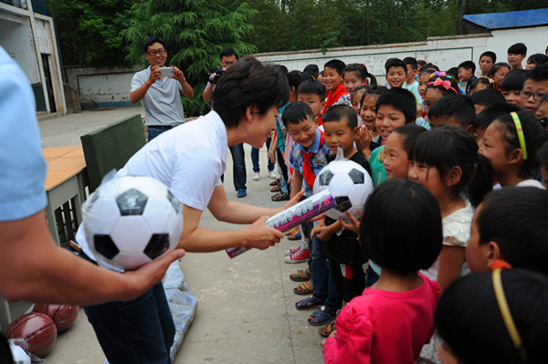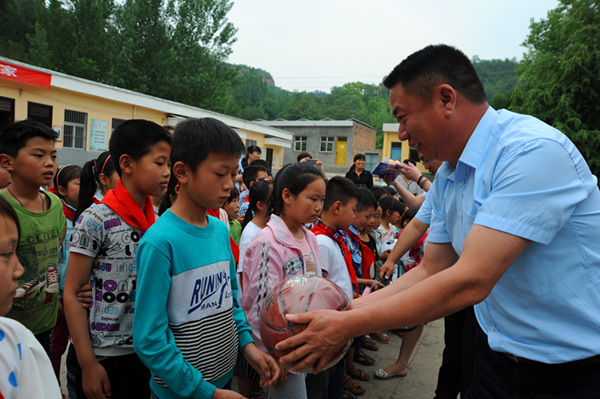 六一前夕,开元集团董事长许明月在得知洛宁县东宋镇郭村小学桌椅陈旧、体育器材短缺的消息后,安排购置了80套桌椅板凳、1副蓝球架、1张乒乓球台、5个足球、5个篮球、2副羽毛球拍、2副乒乓球拍等价值2万余元物资,带去开元人的深情厚谊。
