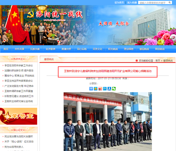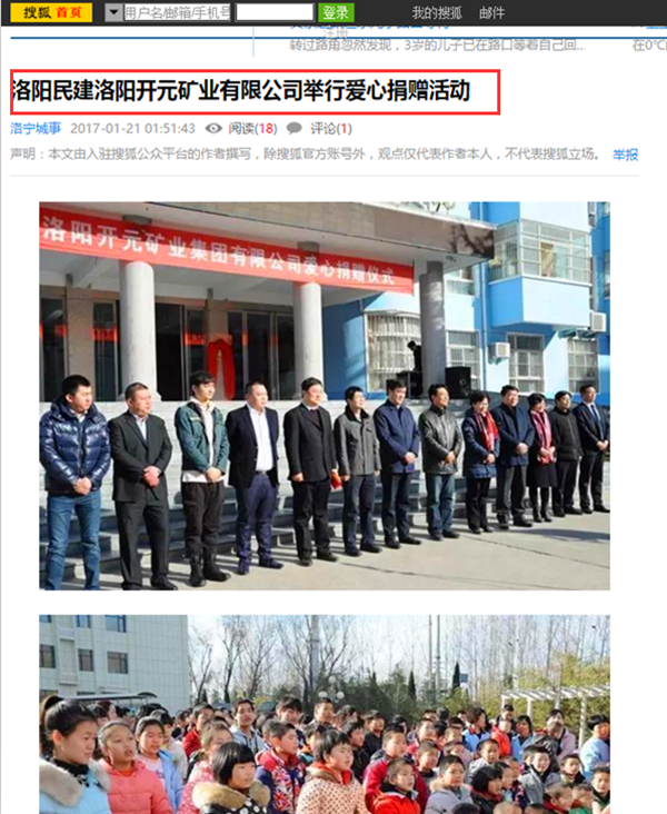 弘扬社会正能量 爱心事业美名扬——洛阳开元矿业集团善举引起国内各大媒体高度关注