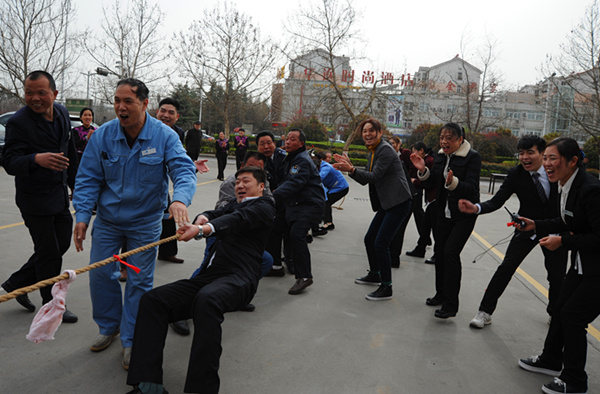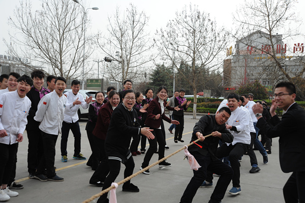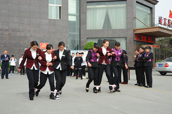 3月17日上午,迪尼斯伊川店酒店在前院广场上举行了一场别开生面的春季运动会。