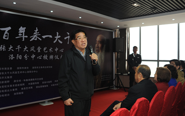 屠际春主任为洛阳分中心授牌,中心副主任、上海海上水墨画院常务副院长沈虎作了题为张大千艺术之传承与创新探索的主题演讲。仪式上宣布上海张大千大风堂艺术中心洛阳分中心和书画家联谊会主任由王瑞峰先生担任。