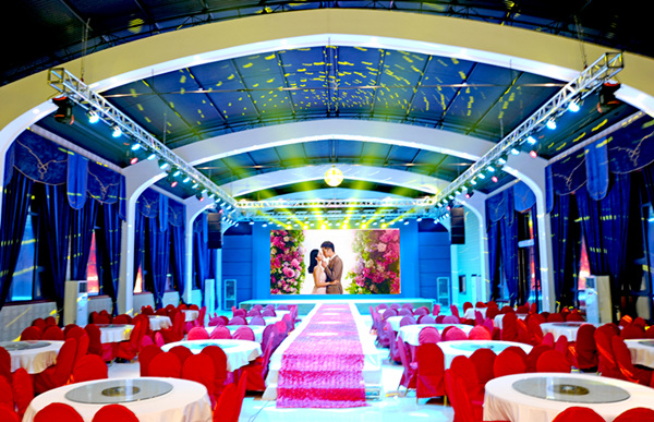 In August, 2016, investing 2 million yuan to build theme wedding hall has been officially opened. The wedding hall has more than 600 square meters large space where can contain 500 people dining at the same time. Leading role of sapphire blue luxury European style decoration, more than 30 square meters high-definition LED screen, glittery lights design, excellent sound equipments, and considerate services are a great place for wedding banquet, large meeting(600 people), new products launch event, buffet party, large artistic performances, birthday party, and other parties.